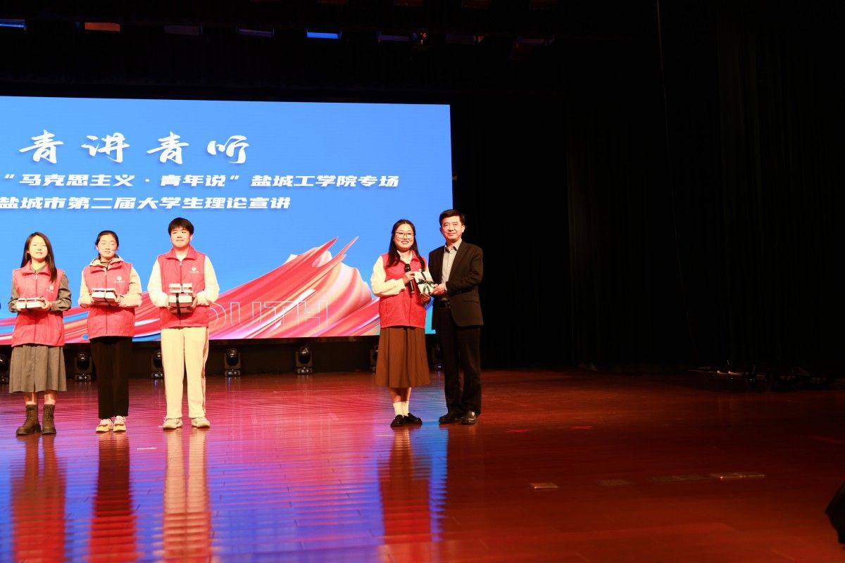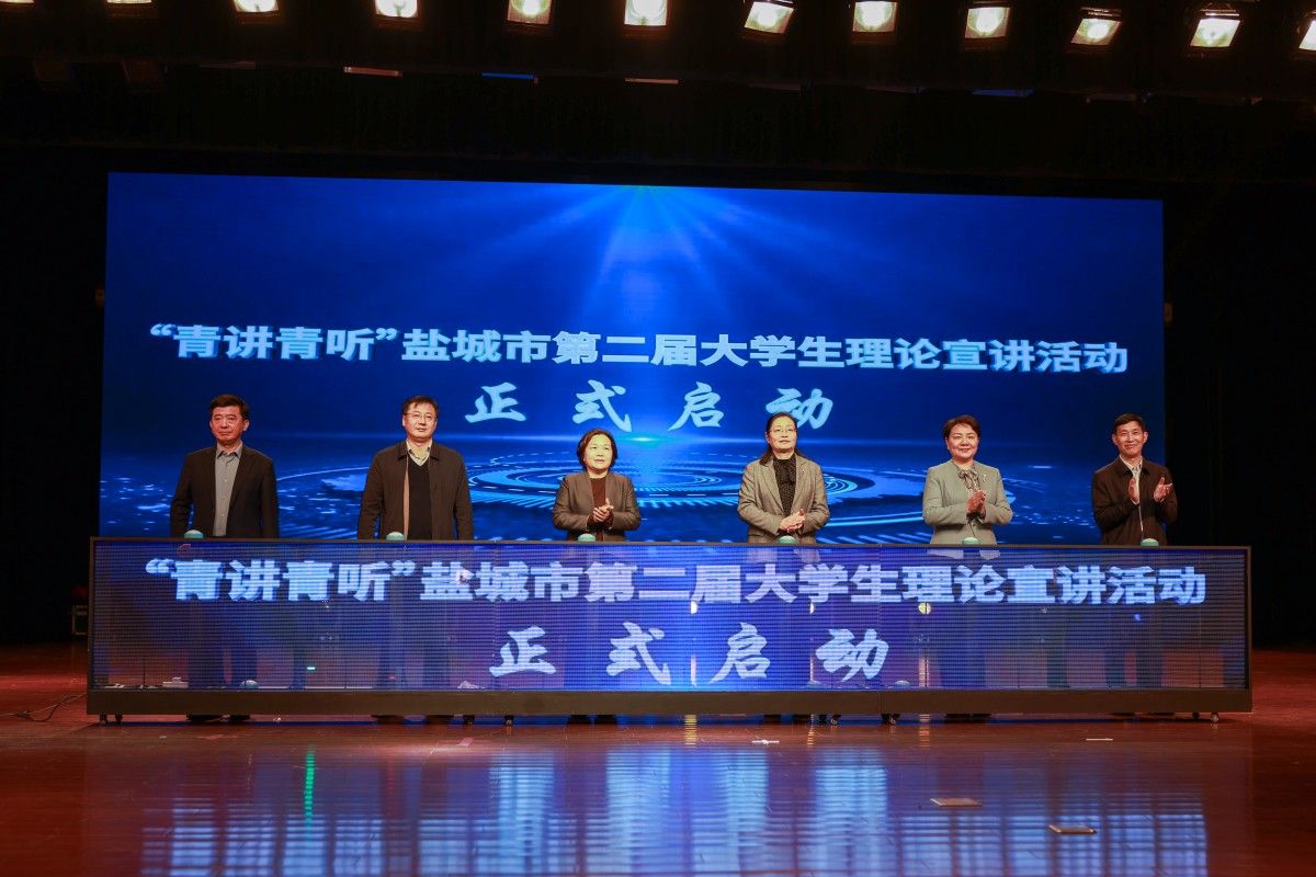 在热烈的掌声中,领导嘉宾共同登台启动“青讲青听”盐城市第二届大学生理论宣讲活动。随后,“青讲青听”理论宣讲活动将在全市8所大中专院校依次开展,掀起新一轮理论学习热潮。