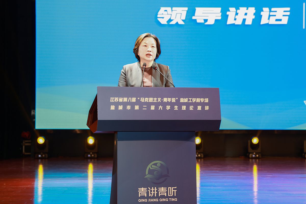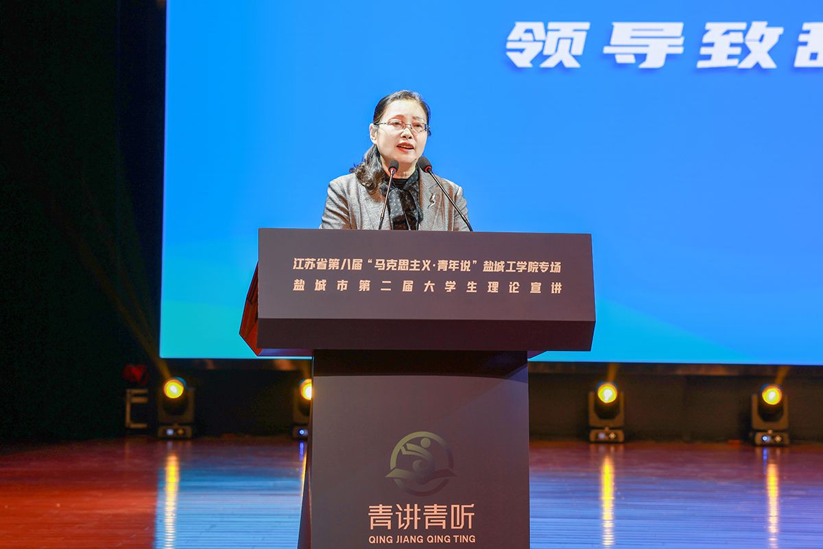 陈卫红指出,以科学理论武装青年、以正确思想引导青年,始终是我们党的传统和优势所在。在迈向全面建设社会主义现代化国家新征程的今天,进一步加强和改进青年思想政治教育工作具有重要意义。她肯定了近年来盐城市在青年理论宣讲方面取得的成效,对全市各大中专院校提出了三点要求:一是认真谋划、精心组织,牢牢把握青年宣讲方向;二是选拔宣讲精英,蓄足人才储备;三是创新宣讲方式,牢牢掌握扩大主流价值影响力版图的青春密码。她希望广大青年学子积极参与到“青讲青听”大学生理论宣讲中来,用党的科学理论武装头脑,做信仰坚定的“追梦人”和勇于担当的“奋斗者”。