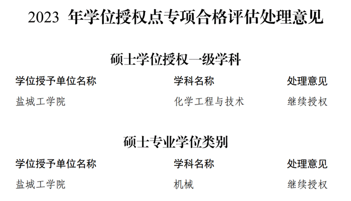 近期,《国务院学位委员会 教育部真人赌博游戏_澳门赌博网-app*官网:下达2023年学位授权点专项合格评估处理意见的通知》(学位〔2024〕25号)发布,真人赌博游戏_澳门赌博网-app*官网化学工程与技术和机械2个硕士学位授权点成功通过专项合格评估,获得“继续授权”资格。这表明真人赌博游戏_澳门赌博网-app*官网首批2个硕士学位授权点建设及研究生培养质量得到国务院学位委员会及教育部的充分肯定。