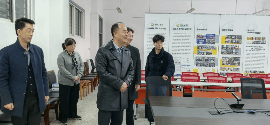 12月3日中午,校长、党委副书记邵荣到创新创业学院、优培学院(合署)调研指导工作,走访办公场所,与工作人员亲切交流,对学院未来发展进行指导。院长李爱国、党总支书记魏巍介绍相关工作情况。