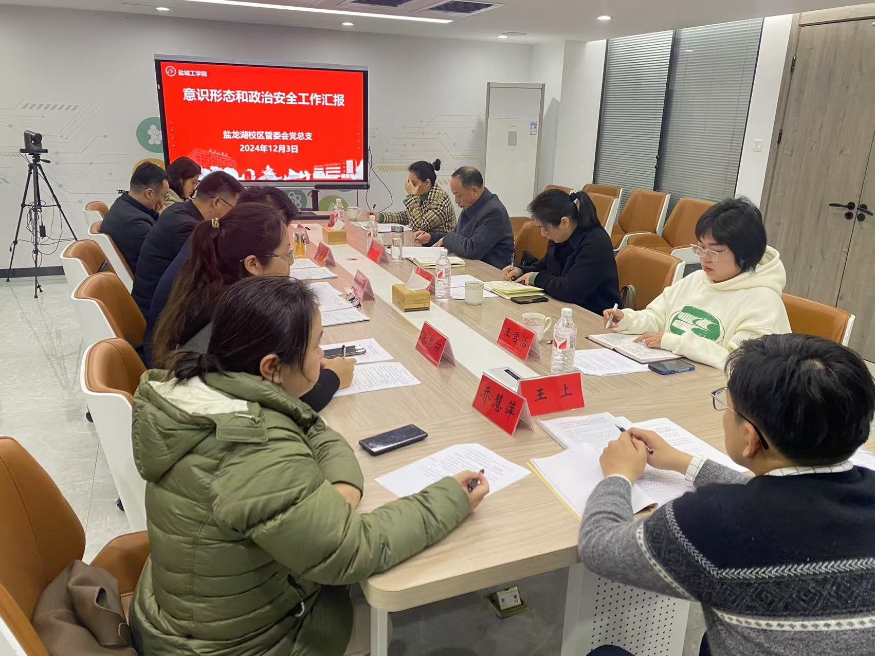 姚军还专题调研了盐龙湖校区管委会党总支意识形态和政治安全工作情况,听取了《盐龙湖校区管委会党总支意识形态和政治安全工作情况报告》。他强调,盐龙湖校区管委会党总支要切实提高政治敏感度,深刻认识意识形态和校园安稳工作的重大意义,树立底线思维,增强忧患意识和危机意识,全方位筑牢校园意识形态安全防线,为校区营造积极健康、安全稳定的育人环境。