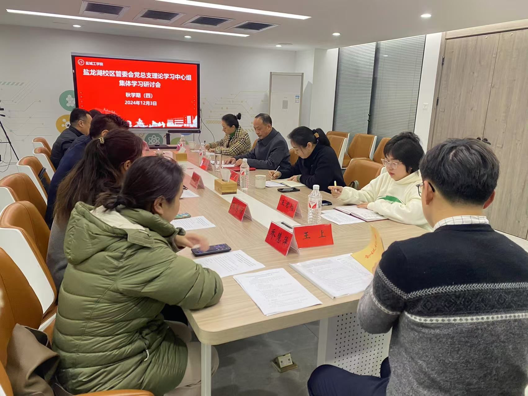12月3日下午,盐龙湖校区管委会党总支理论学习中心组在西伏河产学研协同创新中心215会议室召开秋学期第四次集体学习研讨会。真人赌博游戏_澳门赌博网-app*官网第九巡学旁听组组长、党委常委、统战部部长姚军,真人赌博游戏_澳门赌博网-app*官网第九巡学旁听组成员、机关党委副书记毕蕾,真人赌博游戏_澳门赌博网-app*官网第九巡学旁听组秘书张慧,纪委机关监督检查处正科级纪检监察员王君怡旁听指导。盐龙湖校区管委会党总支副书记(主持工作)赵云峰主持学习会,盐龙湖校区管委会党总支理论学习中心组全体成员参加。