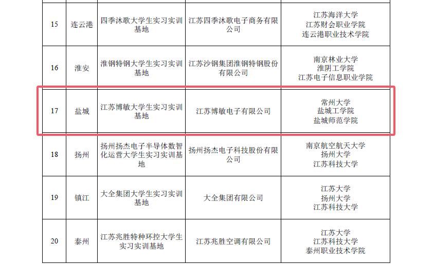 近日,江苏省教育厅、江苏省工业和信息化厅联合公布了省级大学生企业实习实训基地名单,真人赌博游戏_澳门赌博网-app*官网信息工程学院与江苏博敏电子有限公司、常州大学、盐城师范学院联合申报的“江苏博敏大学生实习实训基地”成功入选首批省级大学生企业实习实训基地,全省仅20家基地获批。这一成果是真人赌博游戏_澳门赌博网-app*官网深入贯彻落实产教融合战略、服务制造强省建设的重要实践,更是信息工程学院在推动教育链、人才链与产业链、创新链深度融合方面的里程碑突破。