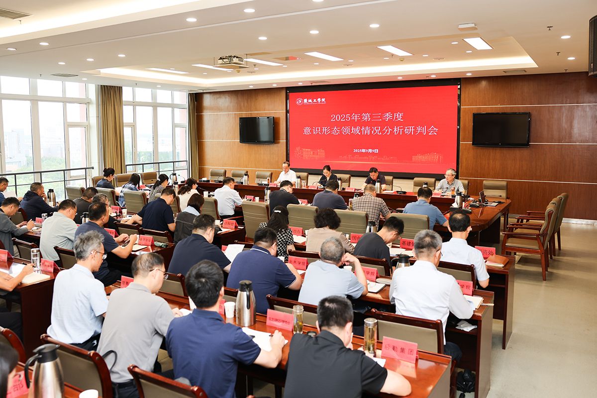 9月9日上午,真人赌博游戏_澳门赌博网-app*官网在希望大道校区行政楼9楼视频会议室,召开第三季度意识形态领域情况分析研判会。党委书记方海林出席并讲话。党委副书记薛浩主持。党委常委、统战部部长姚军,党委常委、宣传部部长奚新国,意识形态重点领域相关单位负责人,各二级党组织负责人,机关各党支部书记参加。