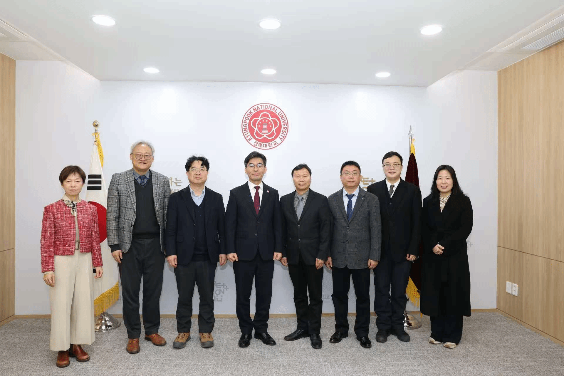 近日,海生学院院长彭斌、副院长齐志涛、青年教师杜骁轩博士一行赴韩国庆北大学进行合作办学交流访问,韩国庆北大学总长許永佑(Young-Woo Heo)热情接待。韩国庆北大学国际合作交流处处长崔熙敬(Hee-Kyung Choi)、庆北大学生物系教授、韩国教育部BK21计划教育与研究组主任黄宇恩(Ui Wook Hwang)、庆北大学海岸农业研究所所长金敬旻教授、金秀璘教授参加交流会。