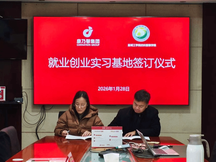 活动中,学院与江苏自然风集团、江苏康乃馨集团分别签署《就业创业实习基地共建协议》。校企双方表示,将以协议签署为契机,进一步整合校企资源,在技术研发、人才共育、实习就业等领域开展深度合作,共同打造产学研用一体化平台,为毕业生提供更精准的就业服务与职业发展支持。