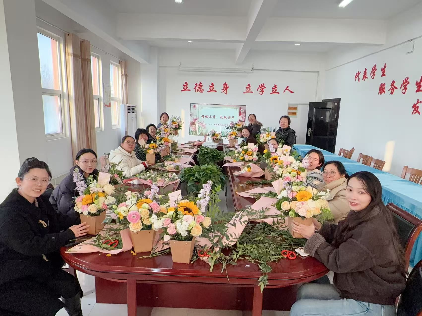 活动设置插花体验与下午茶分享两大环节,让女教职工在轻松雅致的氛围中放松身心、感受美好。插花环节中,大家发挥创意,修剪搭配,创作出一件件独具匠心的花艺作品,在花香笑语中释放压力、收获喜悦。下午茶时光温馨融洽,大家围坐畅谈,分享工作点滴与生活感悟。马晓英向女教职工致以节日问候,感谢她们在学生管理、思政教育等岗位上的默默付出与坚守奉献,勉励大家继续以饱满热情投身工作,绽放巾帼风采。