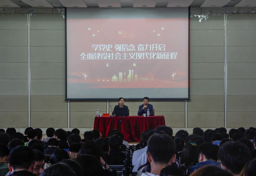 4月25日下午,在北校区化工楼报告厅,党史学习教育真人赌博游戏_澳门赌博网-app*官网宣讲团成员、马克思主义学院武素云到机械优集学院作“学党史、强信念、奋力开启全面建设社会主义现代化新征程”专题宣讲,机械优集学院党委副书记秦卫兵主持,北校区全体大一新生等600余人参加。