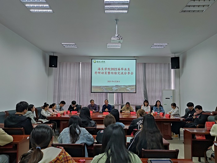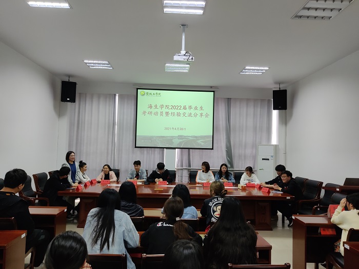 为营造学院考研优良氛围,发挥考研俱乐部的传帮带作用,4月28日下午,海生学院举办考研动员暨考研经验交流分享会。本次会议采用线上线下同步进行的方式,邀请了周庆杰、王浩文等11位考研成功的毕业生分享经验,2018级同学80余人现场参加,90余名同学因在外实习线上参加活动。