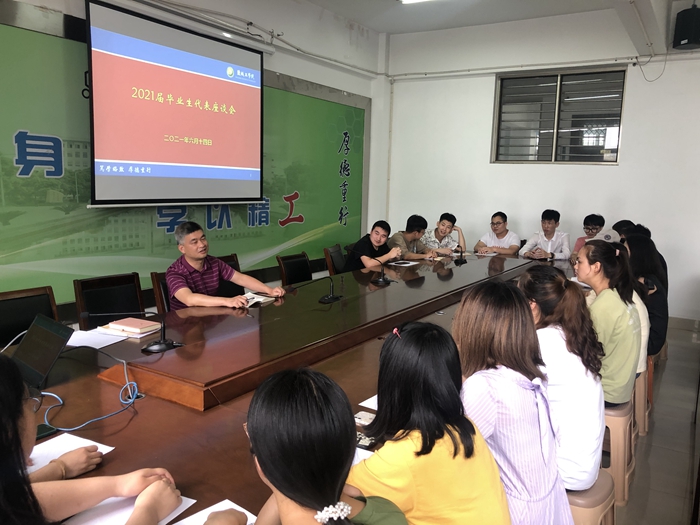 6月15日下午,化学化工学院在北校区学院201会议室召开2021届毕业生代表座谈会,学院副院长祁刚主持,毕业班辅导员和毕业生代表等20余人参加。