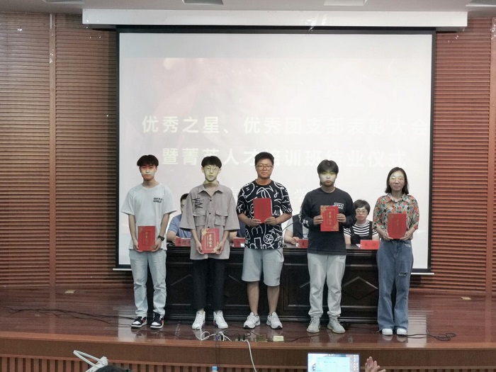 与会领导和老师为优秀之星、优秀团支部、菁英人才培训班优秀学员和优秀团支部颁发了荣誉证书。张雷代表学院对获奖个人和集体表示热烈的祝贺。他希望,受表彰的团体和个人要珍惜荣誉、戒骄戒躁,在今后的工作、学习和生活中不断完善自我,超越自我,牢记“笃学格致,厚德重行”的校训,以更高标准严格要求自己,力争再创佳绩;全体学生干部要始终以“服务同学,恪尽职守,踏实工作,勤于思考,善于创造,甘于奉献”为宗旨,紧跟时代步伐,树立“务实、高效、服务”的工作理念;全体同学要以受表彰的学生干部为榜样勤奋学习,以五四精神作为自己的信念,不懈努力,以饱满的热情和昂扬的斗志,在学业上和工作上开拓进取,不负韶华,不断创新,谱写更加壮丽的青春之歌。