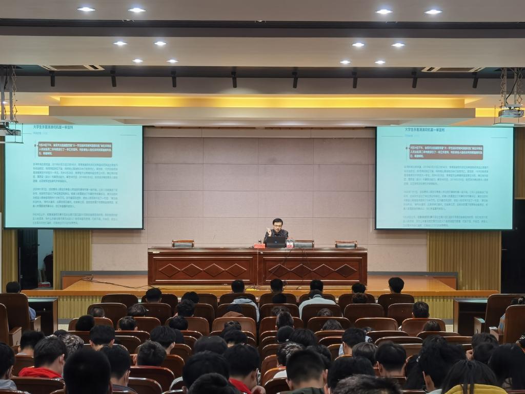 树立宪法权威,培育法治少年。11月7日,为进一步提高在校大学生的法治观念和法律意识,汽车学院在机械馆三楼报告厅举办大学生普法教育。会议由辅导员姚源主持,真人赌博游戏_澳门赌博网-app*官网马克思学院形势与政策教研室主任董海龙主讲,学院各年级学生代表近百人聆听了讲座。
