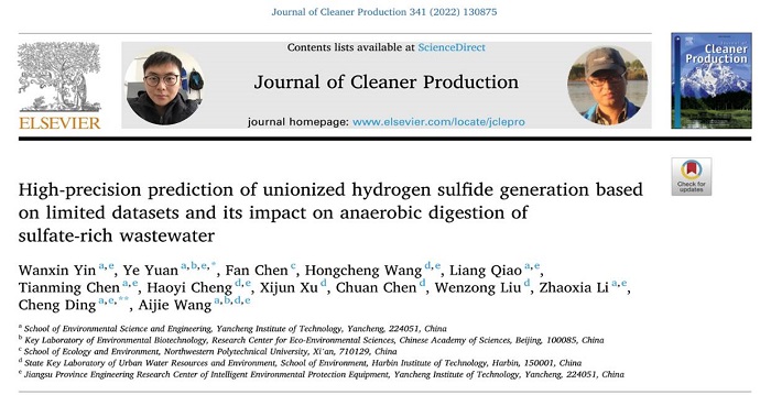 近日,机械工程专业学位硕士研究生殷万欣为第一作者,环境学院丁成教授、远野副教授为通讯作者的研究论文《High-precision prediction of unionized hydrogen sulfide generation based on limited datasets and its impact on anaerobic digestion of sulfate-rich wastewater》在环境科学与生态学领域权威期刊《Journal of Cleaner Production》发表。该期刊2021年影响因子9.297。