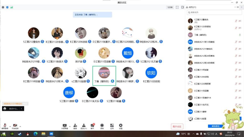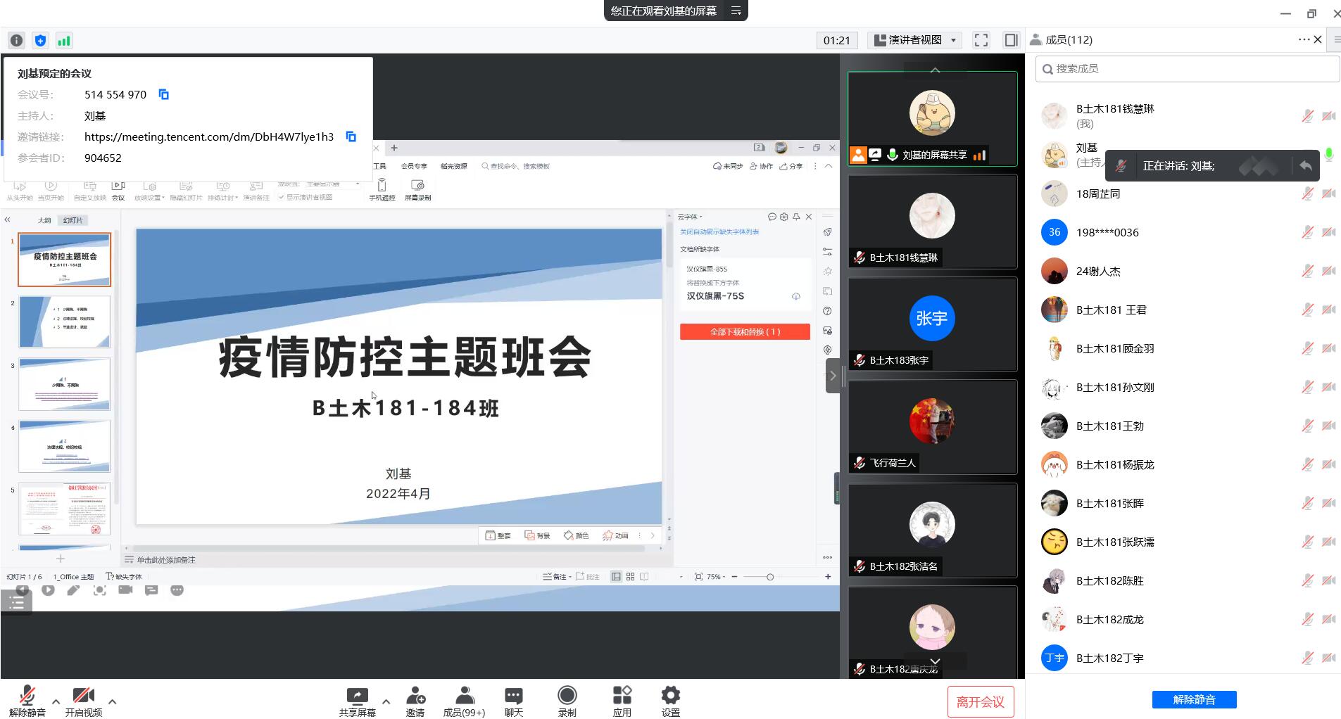 为进一步做好疫情防控工作,增强学生疫情防控意识,提升学生的自我防护能力。4月15-16日,土木工程学院全体专兼职辅导员以责任班级为单位,通过线上腾讯会议召开疫情防控主题班会。