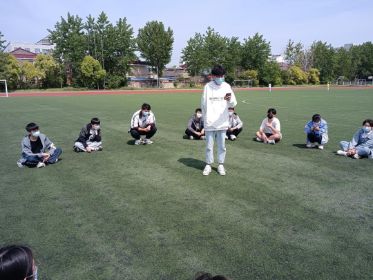 下午2点,青年团员们在操场间隔坐开,围成一个圆形,依次到圆形中央点,分享了对团史故事,交流如何做好一个新时代的团员的想法与建议。每一位同学都做了认真准备,积极思考,上网浏览查阅了有关资料,结合自己的亲身经历,撰写了心得。
