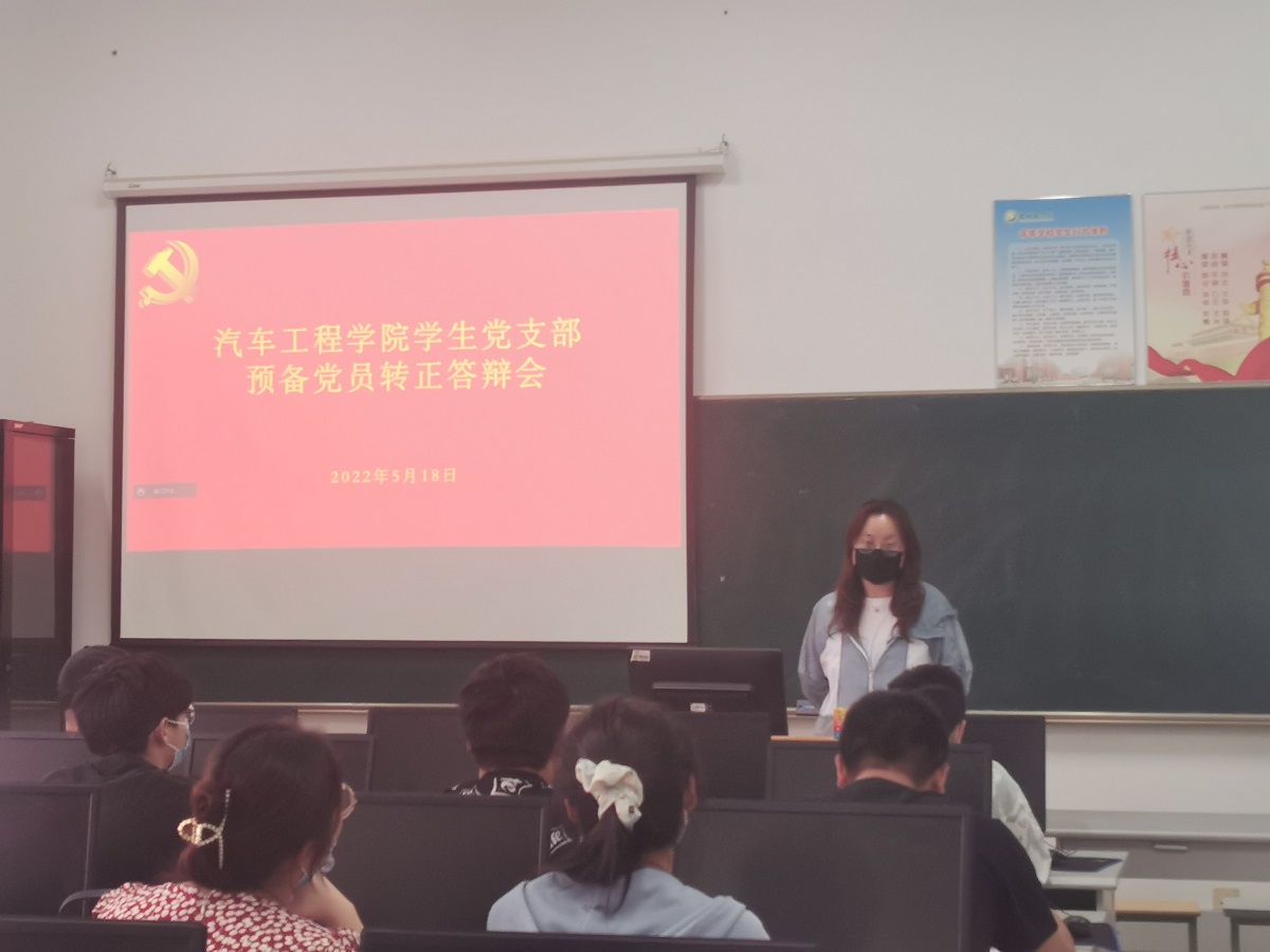 5月18日下午,汽车工程学院在机械馆B407和B412分别召开预备党员转正答辩会。答辩会分别由党总支副书记姜华和学生党支部书记孙进主持,姜华及学生党支部委员担任评委,52名预备党员参加。