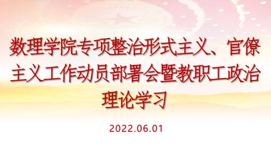 6月1日下午,数理学院线上召开专项整治形式主义、官僚主义工作动员部署会暨教职工政治理论学习会,党总支书记魏伟华主持,全体教职工参加。