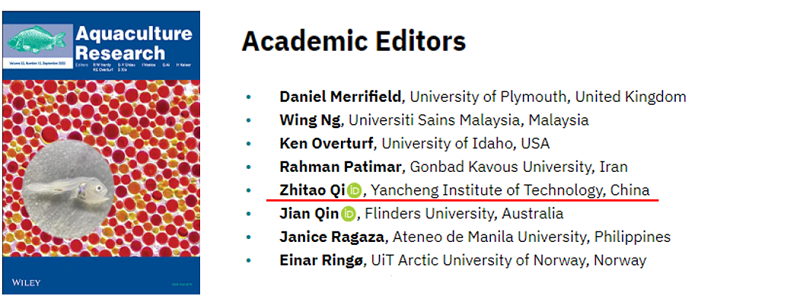 近日,海生学院齐志涛教授受聘担任SCI杂志Aquaculture Research的学术编辑(Academic Editor),主要负责投稿论文质量初审、送审、终审工作以及期刊发展规划等工作。