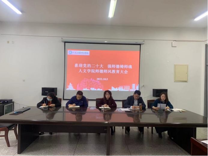 为进一步加强学院师德师风建设,提高教师思想政治素养和理论素养,10月5日下午,人文学院在希望大道校区仁和楼A304开展“喜迎党的二十大 强师德铸师魂”师德师风专题教育。会议由学院党总支书记何登溢主持,学院全体教职工参加。