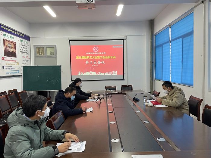 12月22日下午,在北校区大学生活动中心三楼会议室,环境学院召开第三届第二次教职工代表大会暨工会会员代表大会。会议采取线上线下相结合的方式进行,由学院党总支书记陈阳主持,全体教职工、工会会员参加。