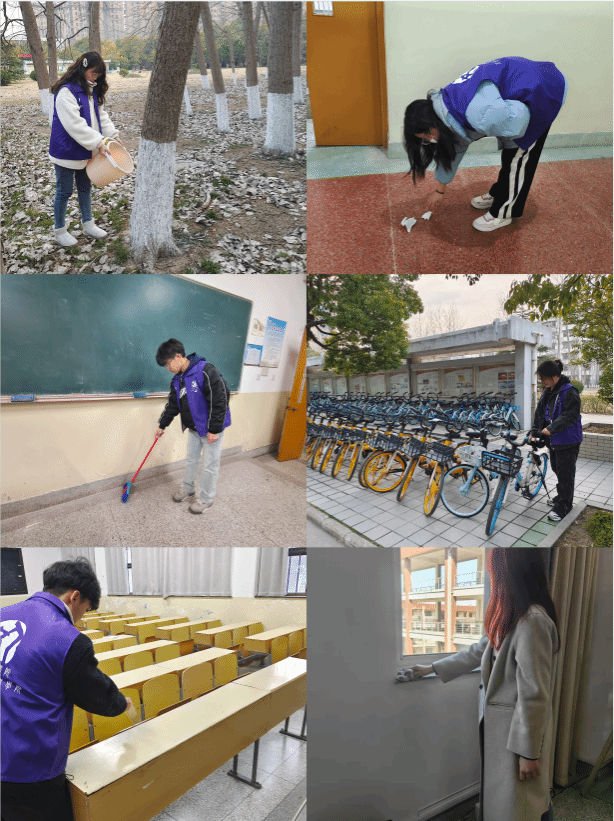 在“赓续雷锋精神,共建和谐校园”校内志愿服务行动中,人文青年志愿者们立足校园,开展整理共享单车、打扫教室卫生、清洁卫生死角、清理校园垃圾、为“校友林”树木浇水等校内志愿服务活动,不仅美化了校园环境,同时也让同学们在具体实践中加强劳动教育,培养了勤俭、奋斗、创新、奉献的劳动精神。