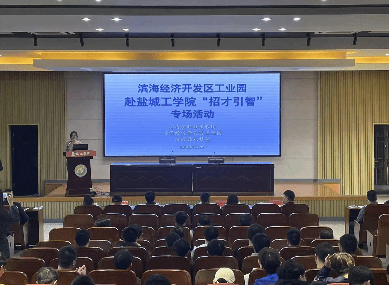为做好2023届毕业生就业工作,抢抓春季促就业关键期,3月9日下午,由机械优集学院主办的滨海经济开发区工业园2023年赴真人赌博游戏_澳门赌博网-app*官网“招才引智”专场活动在南校区机械馆报告厅成功举办。校学生处副处长王益群,学院党委副书记马晓英、副院长宦海祥,校就业创业指导中心老师到现场与滨海县人社局负责人和用人单位进行深入交流,了解企业发展现状和用人需求。