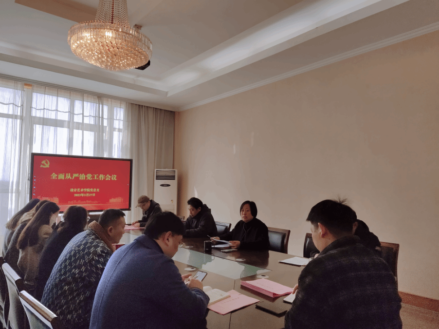 3月27日上午,在南校区润美楼A311会议室,设计艺术学院召开全面从严治党工作会议,党总支书记胡凌霞主持会议,学院领导班子成员、各部门负责人参加。
