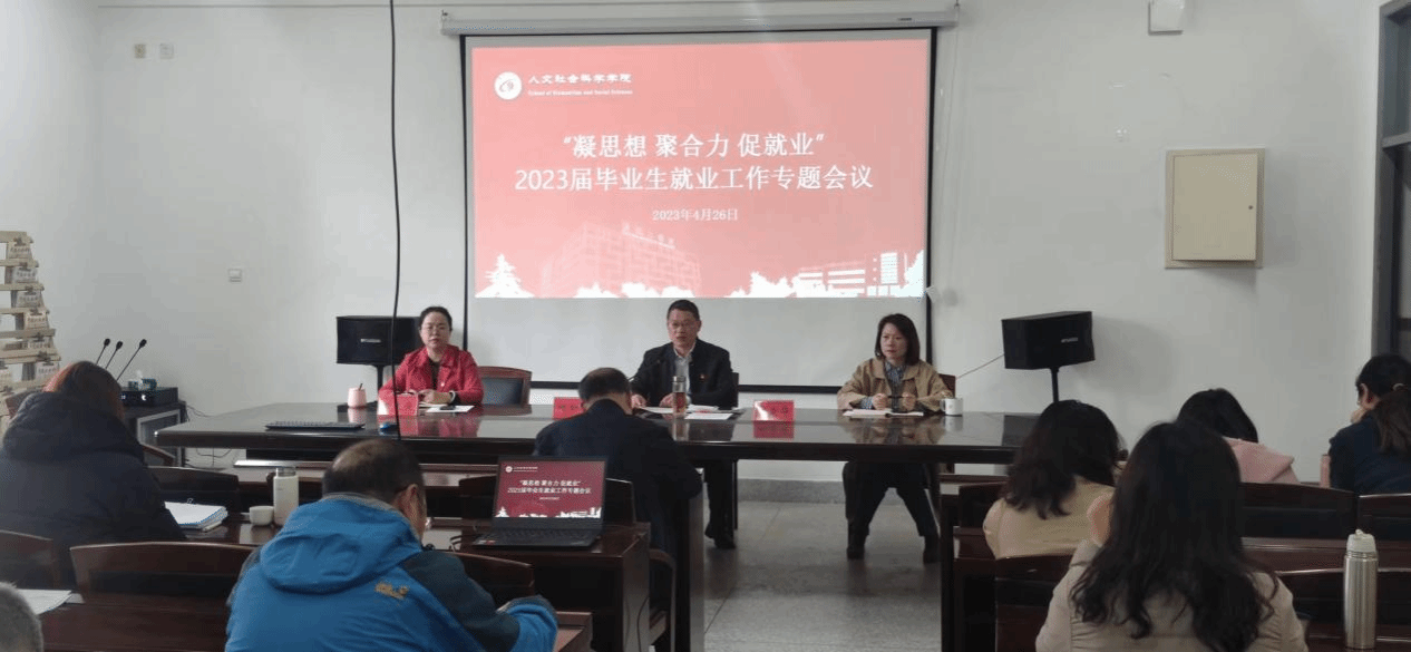 4月26日下午,在仁和楼A304会议室,人文学院召开“凝思想 聚合力 促就业”2023届毕业生就业工作专题会议。会议由学院党总支书记何登溢主持,人文学院全体教职工参加。