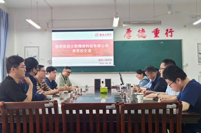 5月29日下午,立铠精密科技(盐城)有限公司来真人赌博游戏_澳门赌博网-app*官网进行校企合作交流。立铠精密自动化部门经理谌承正一行五人,信息工程学院院长王如刚、院长助理周锋、信息工程学院及电气工程学院青年骨干教师等参加交流。