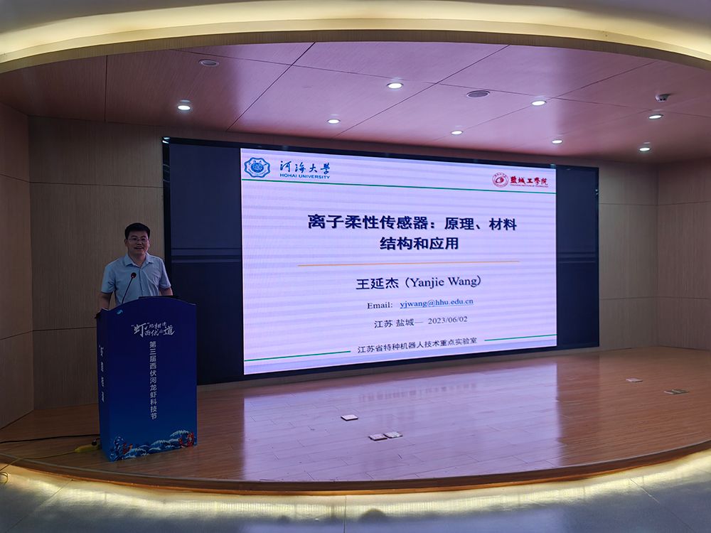 王延杰作题为《离子柔性传感器:原理、材料、结构和应用》的报告,系统介绍了他的课题组在离子柔性传感器的传感机理、组成、结构设计及应用方面的最新研究进展,总结了离子柔性传感器当前面临的挑战和未来发展趋势,为离子传感器的发展提供可参考的技术路线图。陈松结合自身的发展历程,作了题为《产教融合 协同发展》的报告,介绍了他与企业开展产学研合作、共建工程技术中心和技术研究院、成立科研团队、科研促进教学等方面的经验以及取得的成果,总结出“以项目研究为纽带,密切产教学研用联系;以人才培养为基础,服务社会”的论点。报告结束后,两位专家还对与会老师提出的问题进行了解答和交流。