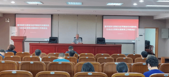 6月7日下午,在南校区图书馆五楼报告厅,图书馆组织召开学习贯彻习近平新时代中国特色社会主义思想主题教育推进会。会议由党总支书记花爱军主持,全体党员参加。