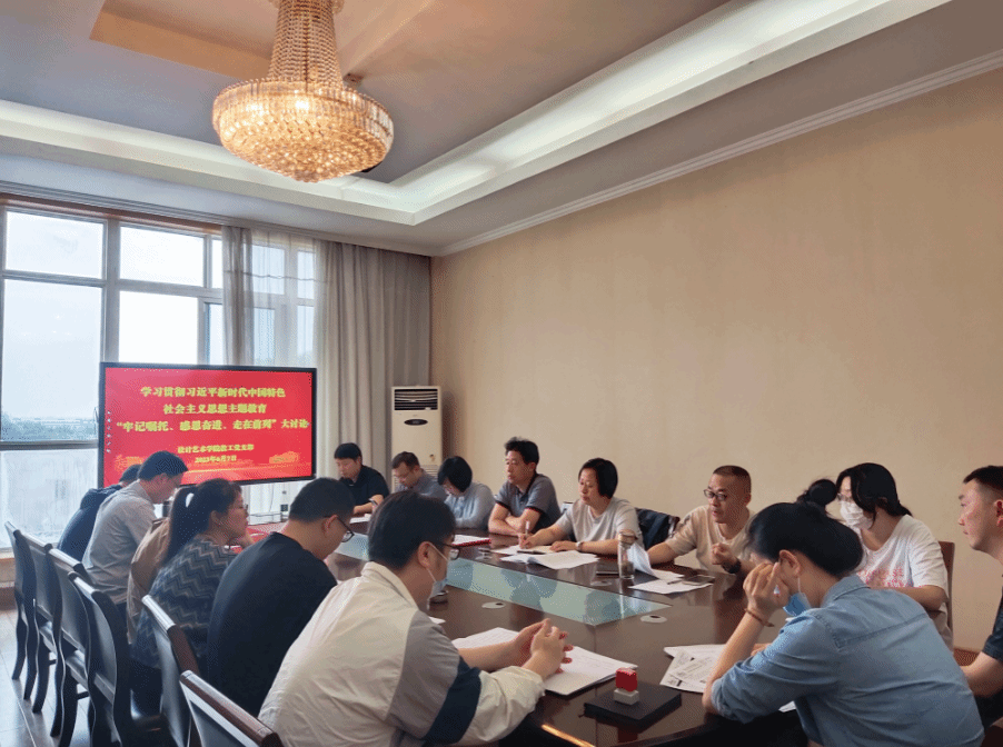 6月7日下午,在润美楼A311会议室,设计艺术学院教工党支部开展学习贯彻习近平新时代中国特色社会主义思想主题教育“牢记嘱托、感恩奋进、走在前列”大讨论工作会议。教工支部书记钱峰主持会议,学院领导班子成员及部分教工党员参加。