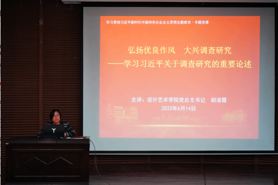 为深入开展学习贯彻习近平新时代中国特色社会主义思想主题教育,6月14日下午,在南校区润美楼报告厅,设计艺术学院党总支书记胡凌霞以《弘扬优良作风 大兴调查研究——学习习近平真人赌博游戏_澳门赌博网-app*官网:调查研究的重要论述》为题讲授专题党课。学院师生党员和部分骨干教师参加党课学习。