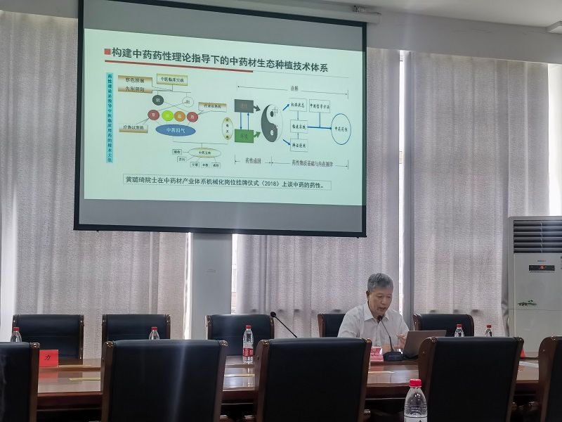 张重义教授从道地药材起源、成因入手,着重分析了生态记忆在道地药材追溯及生态栽培中的前景分析,并围绕“我国重要中药材分布、生产状况及驯化特点”等方面作了详细报告。他介绍了学科前沿报道及团队持续开展的地黄、怀山药等药材品种研究工作,并深度探讨中医药未来发展之路,促进中医药产业的传承与创新。他指出,中药材是中医药事业传承和发展的物质基础,而道地药材以其独特的品质和药效而闻名,应用前景广阔。报告会后,张教授与师生进行了深入的探讨和交流。