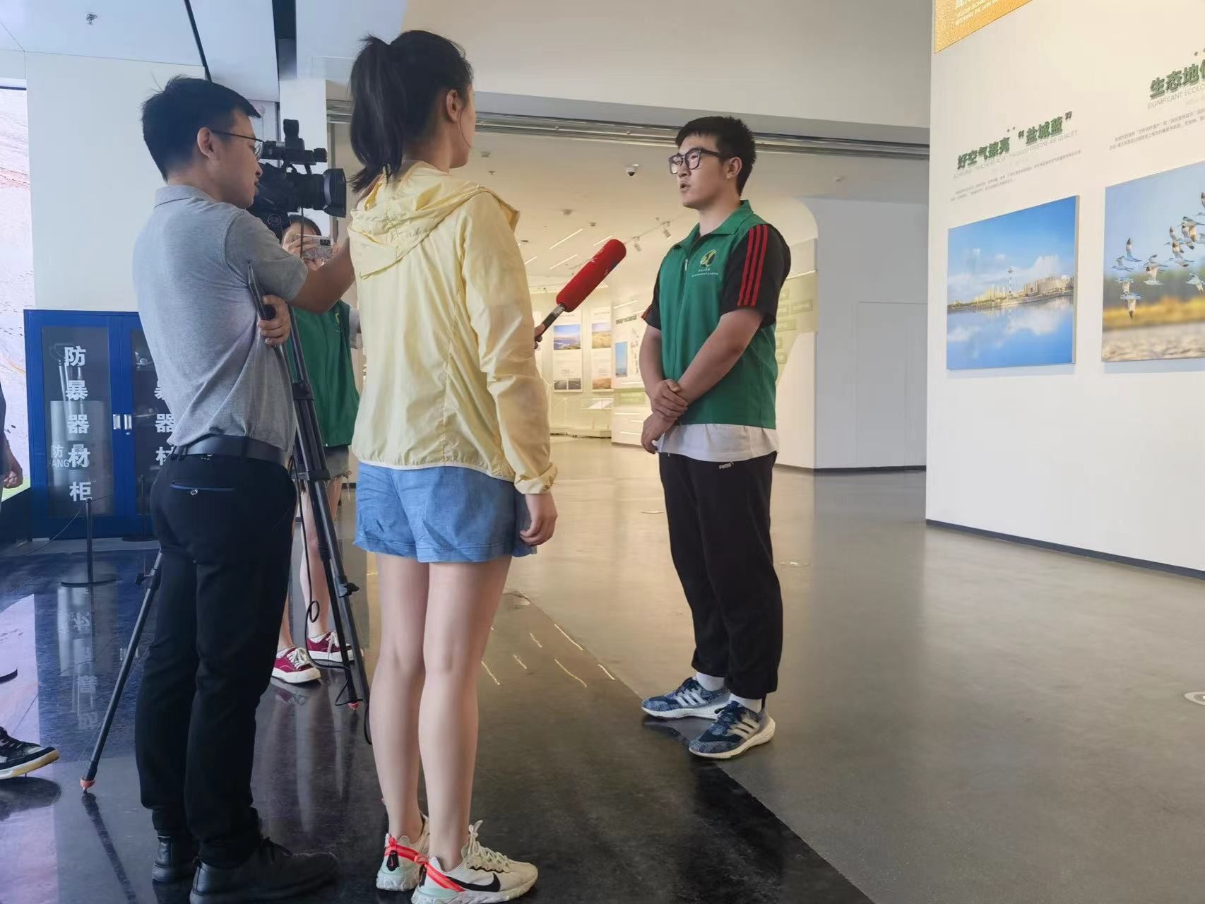 实践团成员陈厚铭作为团队代表接受了盐城电视台的采访,他表示从盐城申遗成功四周年活动中,切实感受到了申遗工作的重要性,为盐城有这样宝贵的自然资源感到自豪,自己将继续传承志愿者精神,致力于保护湿地自然资源的工作,维护好美好家园。