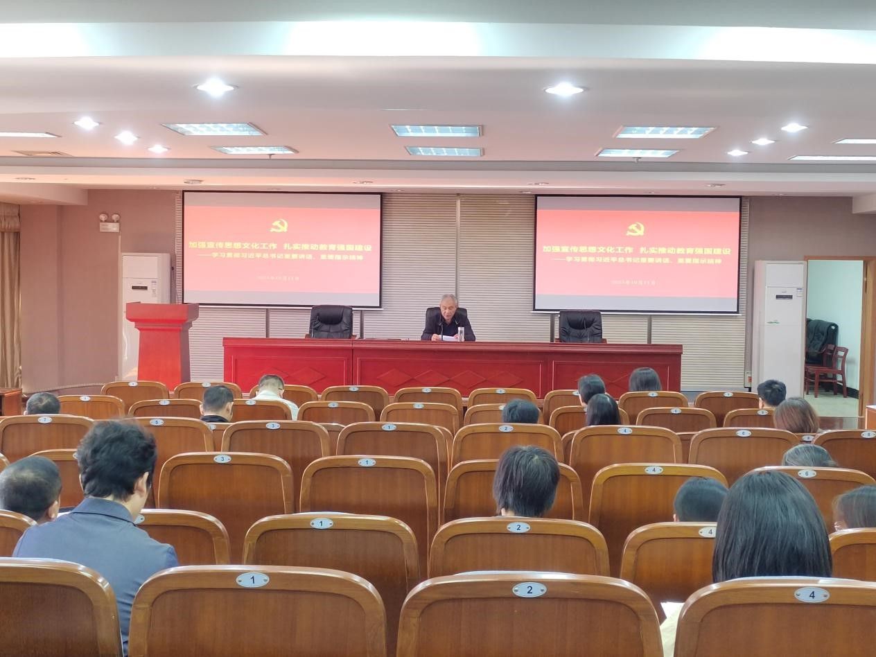 花爱军传达学习了习近平总书记对宣传思想文化工作作出的重要指示精神和在中央政治局第五次集体学习时的重要讲话《扎实推动教育强国建设》。