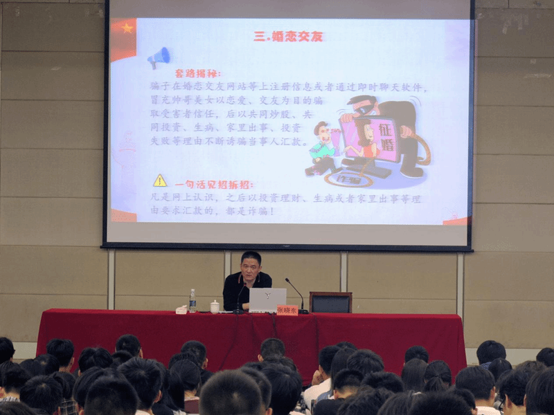 张晓东强调大学生安全教育的重要性,介绍总体国家安全观的相关内容,讲解大学生校园生活安全,剖析校园安全的典型案例,提出了校园风险防范和规避措施。他希望同学们能够维护国家安全,重视政治安全,关注社会安全,警惕网络安全,做好自身安全。