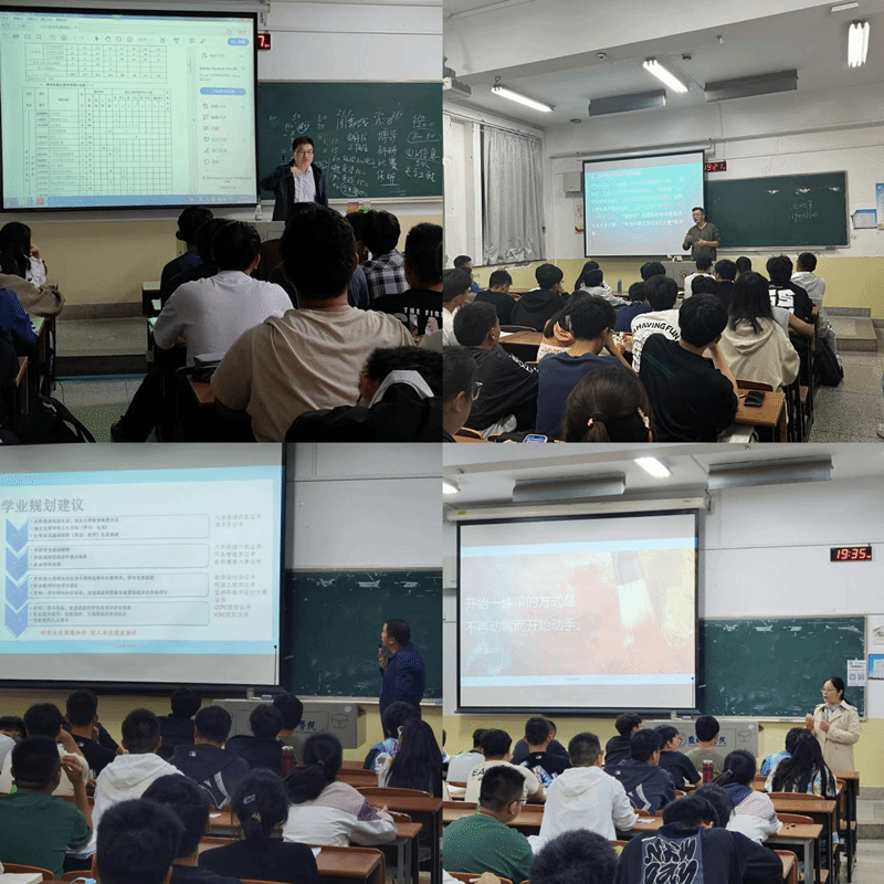 孔维宾、沈兆军、黄曙荣、宋法根等老师介绍人才培养方案,从服务领域、人才定位、职业特征、职业能力等方面讲解人才培养目标,交流课程体系的框架结构及课程设置,强调了大学生参与科研和学科竞赛的重要性,指导同学们科学规划学习和生活,鼓励同学们明确目标、勤奋学习、超越自我。