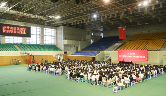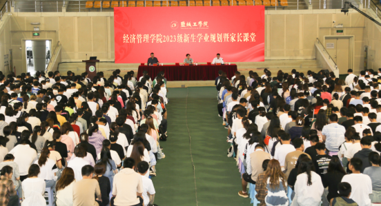 近日,经管学院在北校区体育馆举办2023级新生学业规划暨家长课堂。学院党委书记卜树春、副书记周旺基、副院长李争光出席。学工办、团委负责人,新生辅导员及北校区660名2023级新生在主会场参会,198名专转本新生在南校区分会场观看会议直播,全体新生家长通过网络直播参会,7200余人次观看直播课堂,获1.5万余点赞。