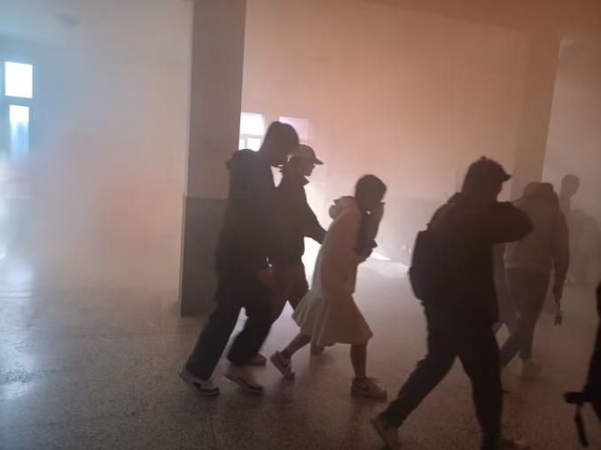 学生进行紧急逃生演练