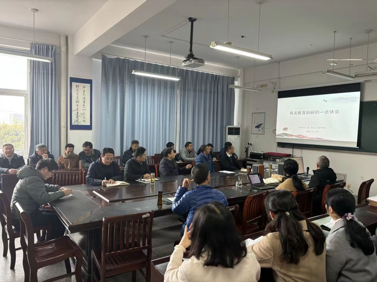 11月15日下午,信息学院在希望大道校区怀德楼B410会议室,邀请校关工委副主任、人文社会科学学院洪林研究员作教育科研专题报告。学院院长王如刚主持报告会,近80位教职工参加学习。