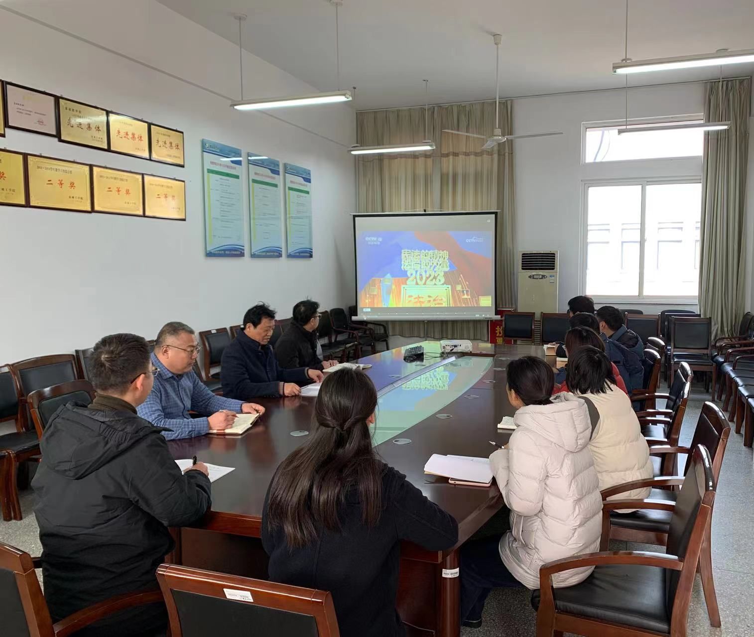 为深入学习党的二十大精神,贯彻落实习近平总书记法治思想,12月6日下午,数理学院党总支在希望大道校区博学楼B512会议室,组织开展“大力弘扬宪法精神,建设社会主义法治文化”主题活动。学院院长薛长峰主持,理论学习中心组全体成员参加。