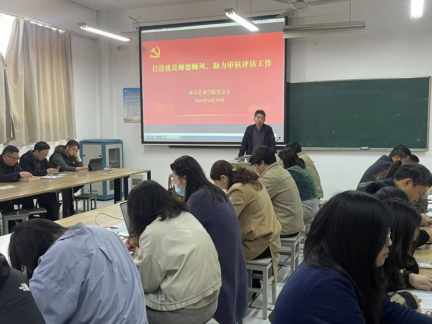 4月10日下午,设计艺术学院在润美楼A209召开教职工会议,开展师德师风专题教育。学院党总支书记胡凌霞主持会议,学院全体教职工参加。