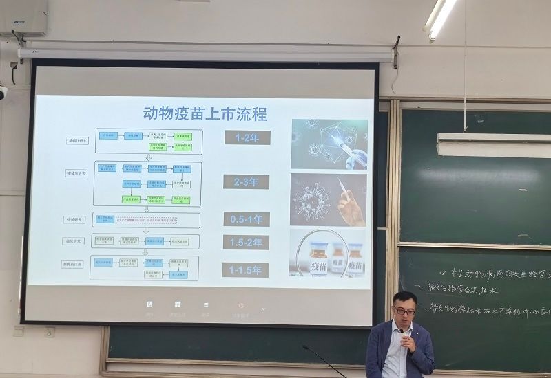 为进一步落实专业应用型人才培养计划,深化校企合作,推进产教融合,提升人才培养质量,近日,海洋与生物工程学院特邀艾生牧饲料有限公司副总裁付维来教授走进课堂,开展产教融合课程《水生动物病原微生物学》教学,为2022级水生动物医学专业学生授课。