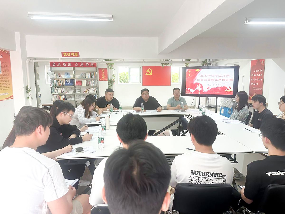 6月4日下午,土木工程学院党委在“砼心苑”一站式学生社区党员活动室召开党员专题教育及预备党员转正答辩会。院党委书记谷伟、院党委副书记陈广正出席,学生党支部书记、支部委员、支部教师党员和21位预备党员参会。