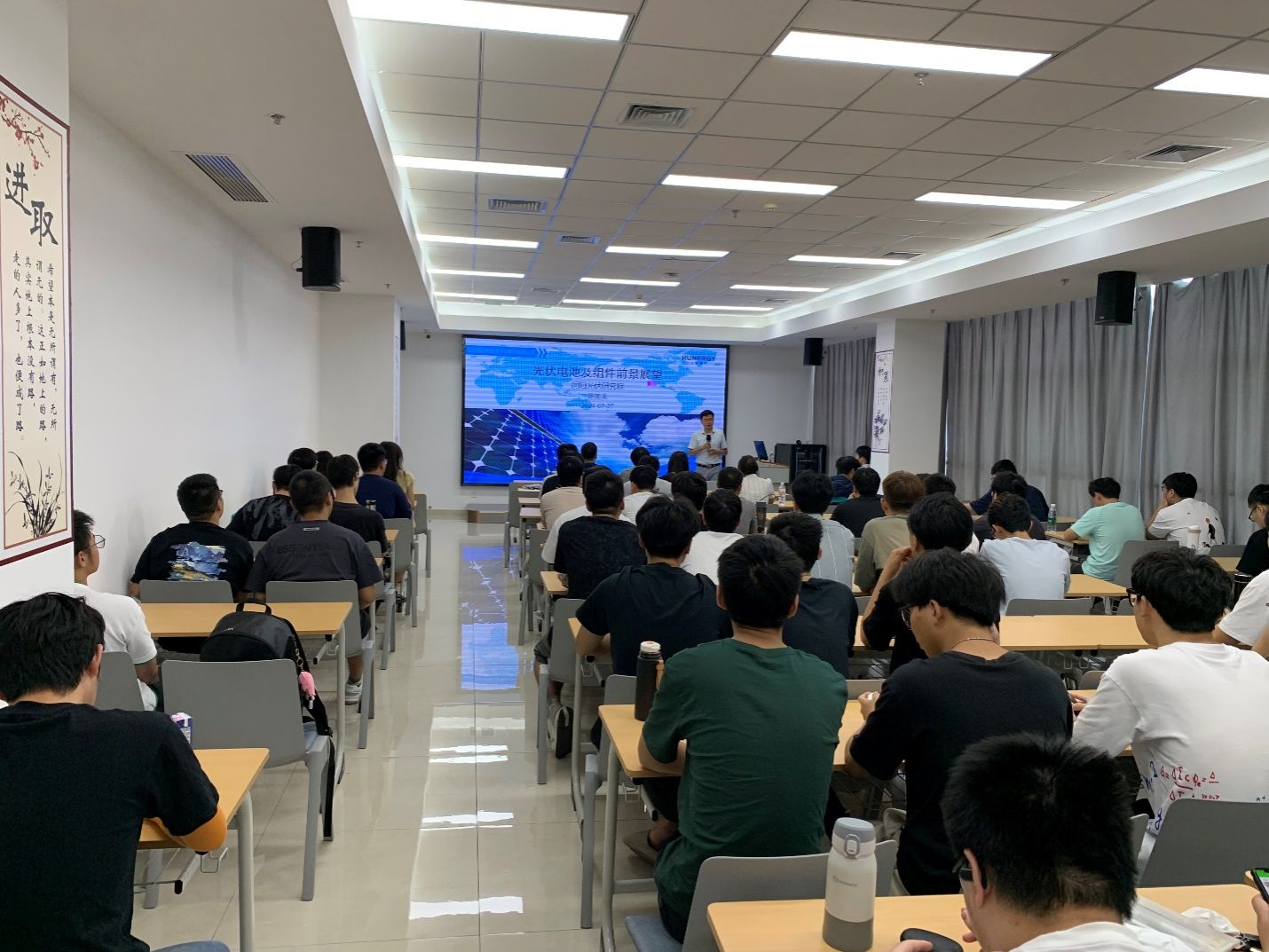 为强化产教融合、加强研究生对新能源产业的了解,提升人才培养质量,7月27日上午,盐龙湖智能制造暑期真人赌博游戏_澳门赌博网-app*官网邀请江苏省产业教授、江苏润阳新能源科技股份有限公司研究院副院长陈如龙作题为“光伏电池和组件前景展望”的报告,第二届盐龙湖智能制造暑期真人赌博游戏_澳门赌博网-app*官网全体2024级研究生参加。