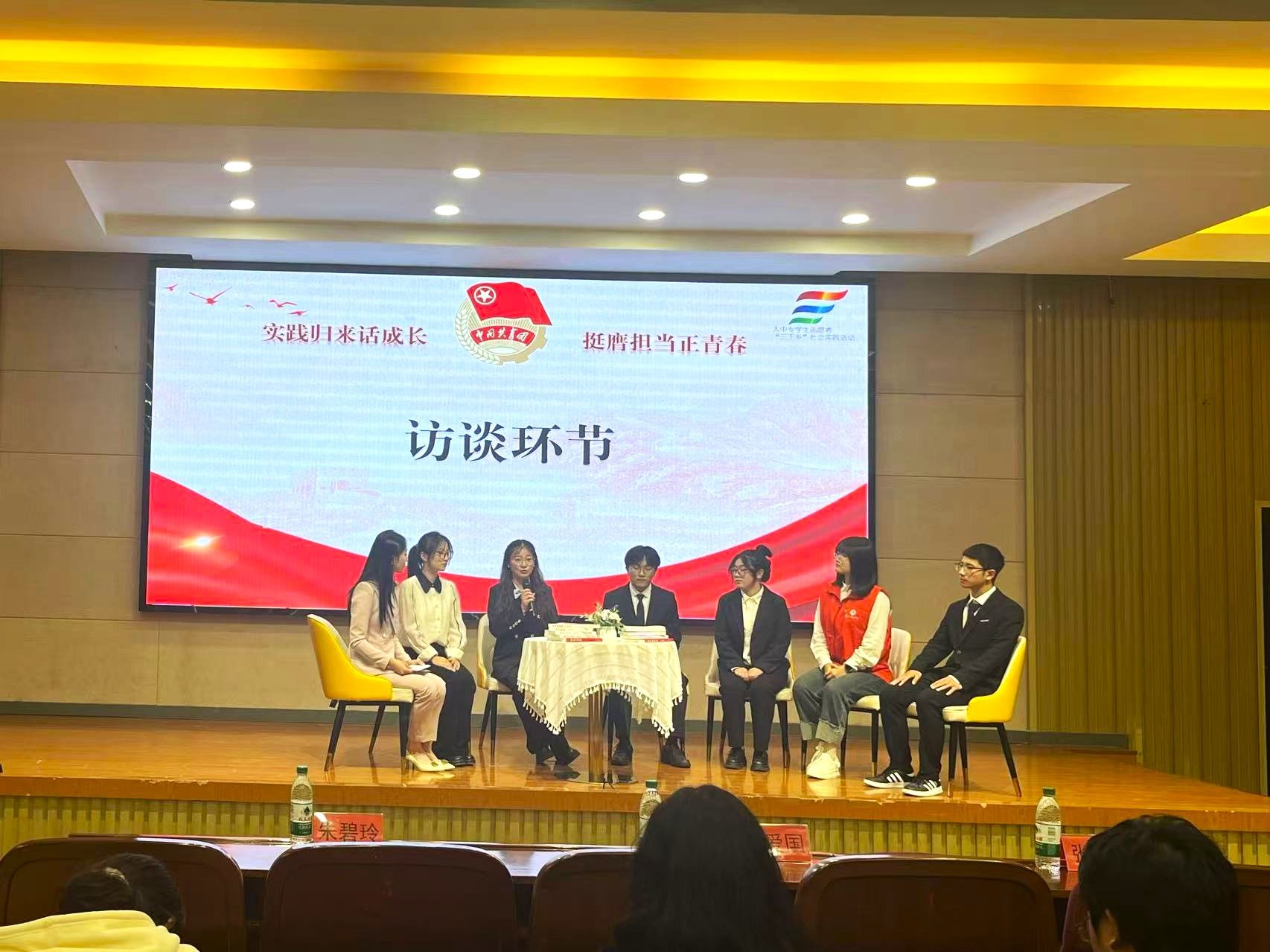 为深入学习宣传贯彻习近平新时代中国特色社会主义思想和党的二十届三中全会精神,激励真人赌博游戏_澳门赌博网-app*官网大学生在实践中成长成才,践行“请党放心,强国有我”的铮铮誓言,10月27日、11月6日晚上,由校团委主办的“实践归来话成长,挺膺担当正青春”主题分享会分别在北校区五四报告厅、南校区机械馆报告厅举行。校团委副书记胥爱国、校团委实践创新部主任徐潘虹,各二级学院团委书记、学生代表等600余人参加活动。