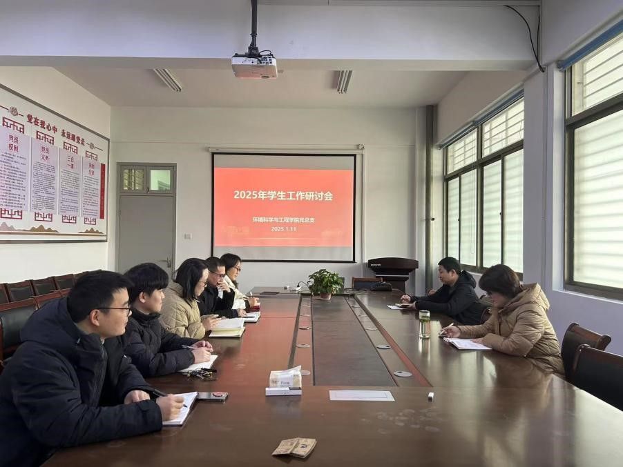 为进一步加强辅导员队伍规范化、制度化建设,持续推进学院学生工作高质量发展,1月11日,环境学院在会议室召开2025年学生工作研讨会。学院党总支书记孟鑫、副书记王丽坤和全体专兼职辅导员参加。