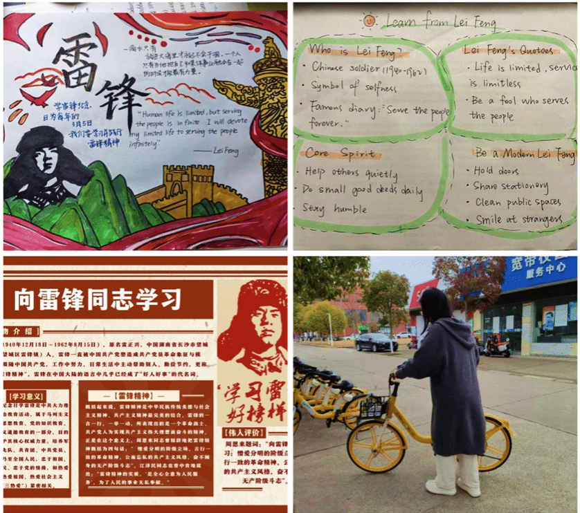 各班组织开展了“宣讲雷锋精神”班会,积极宣传雷锋精神,鼓舞着同学们向雷锋精神看齐的士气。全院上下广大青年在校园内开展义务劳动等活动,有的深入校园内部,清理道路垃圾,排列共享单车,美化环境;有的走进图书馆,为图书管理员分担书籍的整理与摆放;还有的在校内设立爱心服务站,为同学们提供义务维修、书籍介绍……也有不少同学通过手抄报的形式绘出奉献与光荣。无论是哪种方式,他们都用实际行动诠释了雷锋精神的时代内涵,展现了当代青年的责任与担当。