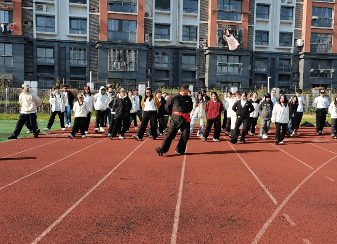 3月19日,国际教育学院在希望大道校区东操场举办“太极之道”体验活动。本次活动是“感知中国·‘盐’途有你”留学生文化体验课堂之一,邀请体育学院马铭良博士带领来自泰国、巴基斯坦、孟加拉国、韩国、乌兹别克斯坦等国家的50余名留学生了解太极文化、体验太极之道。